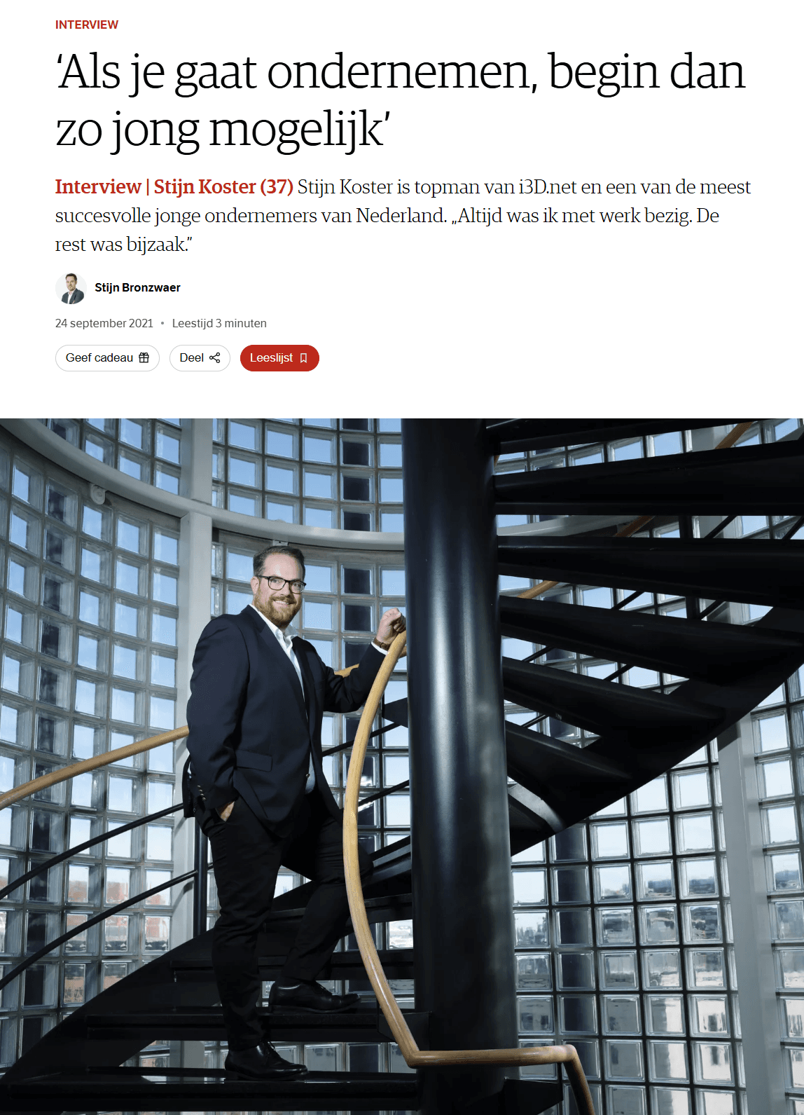 "Stijn Koster vertrekt bij i3D.net, wordt varkensboer"